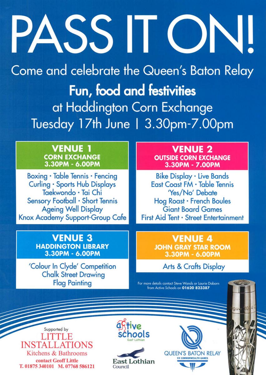 A short video (by David Gilmour) of the Queen's Baton Relay for the Glasgow 2014 Commonwealth Games in Haddington last night featuring Jodie Lavin can be viewed here.
